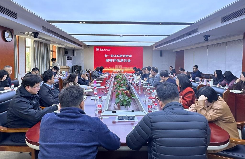 3月18日下午,新一轮本科教育教学审核评估培训会在行政楼215会议室举行,副校长陈爱喜主持会议并讲话。