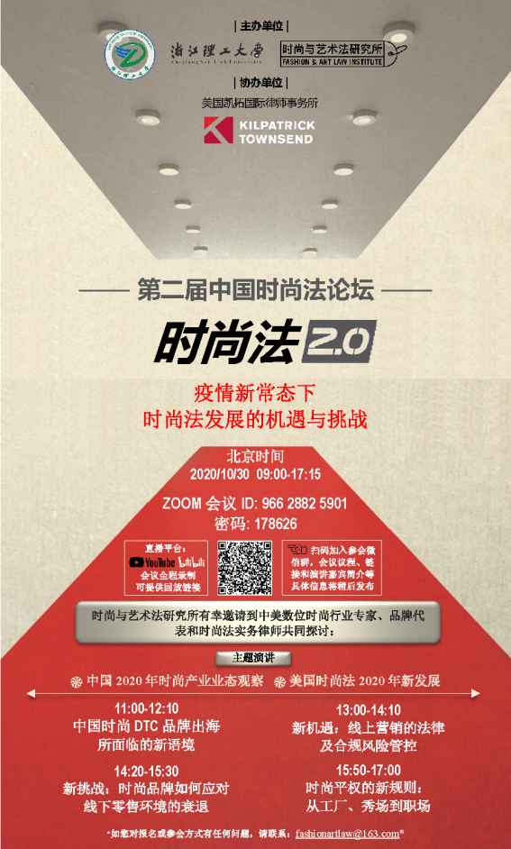 论坛主题:时尚法2.0 — 疫情新常态下时尚法发展的机遇与挑战