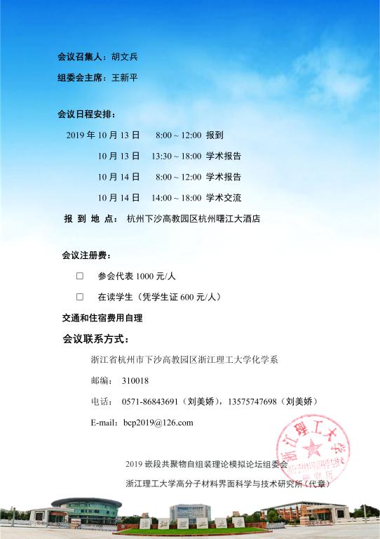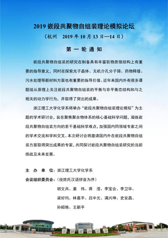 2019嵌段共聚物自组装理论模拟论坛第一轮通知