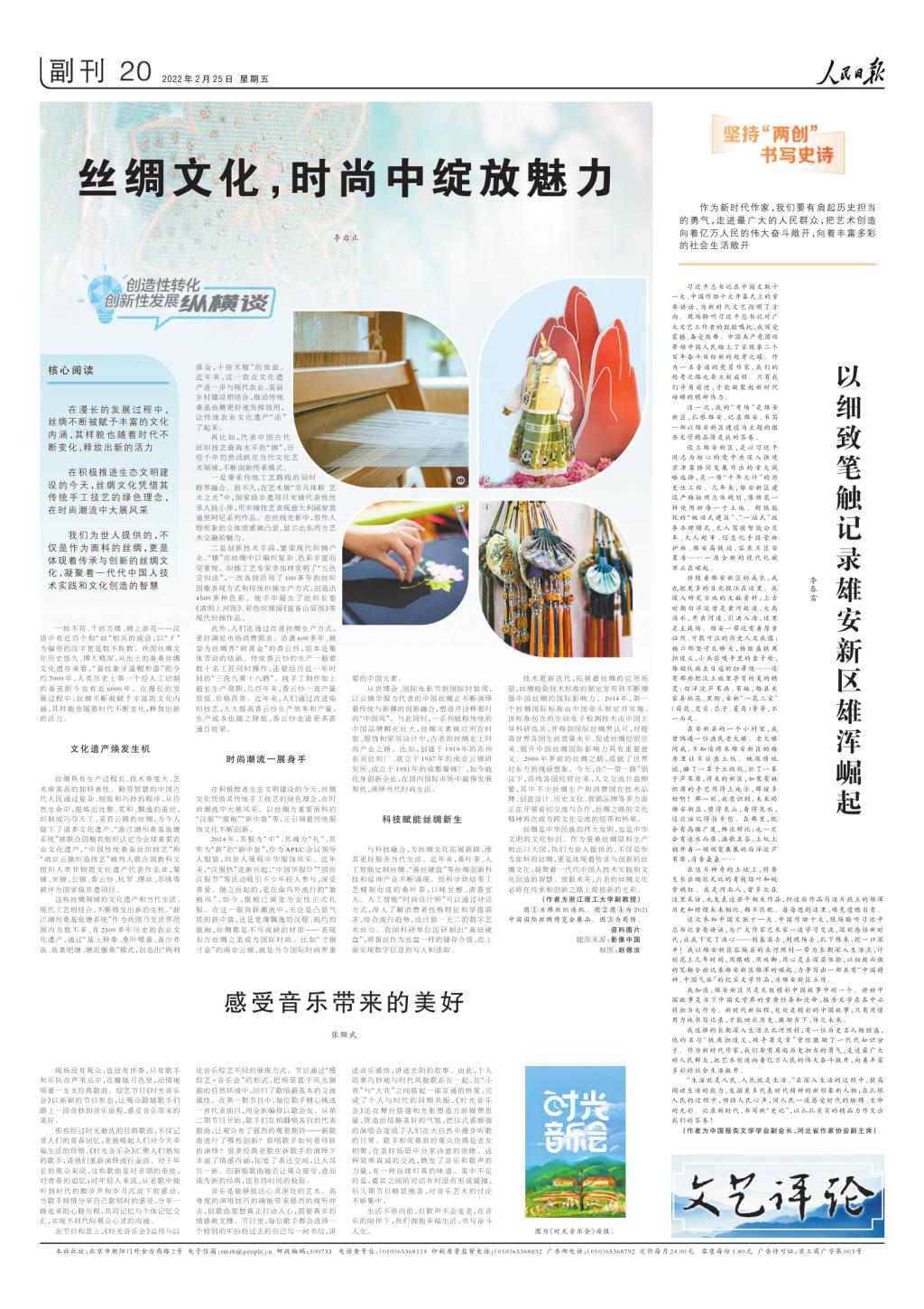 2月25日,《人民日报》(文艺版)“创造性转化 创新性发展纵横谈”专栏刊发BEAT365杂志社社长、《丝绸》总编辑李启正老师撰写的文章《丝绸文化,时尚中绽放魅力》。